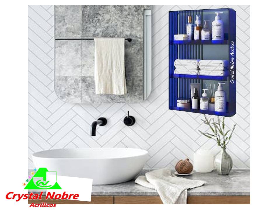 Prateleira Para Banheiro 3 Andares Acrílico Az Transp Linha Lux Color