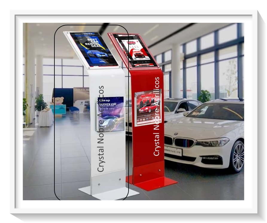 Totem Pé Duplo A4 Com Bolso Frontal AutoCar Acrílico Branco Neve