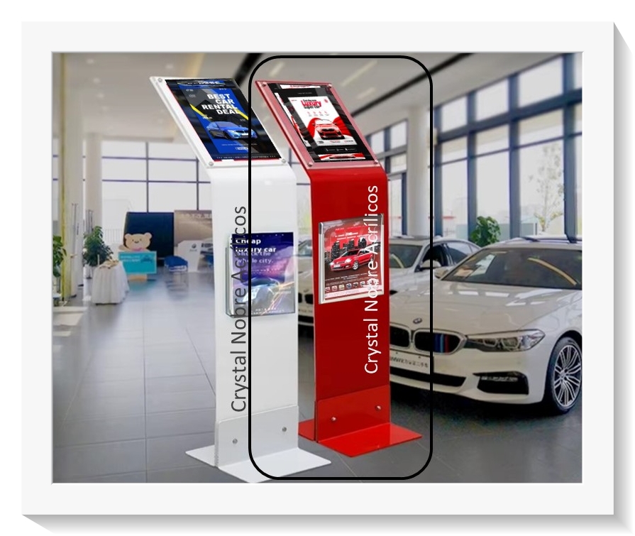 Totem Pé Duplo A4 Com Bolso Frontal AutoCar Acrílico Vermelho Reflexo